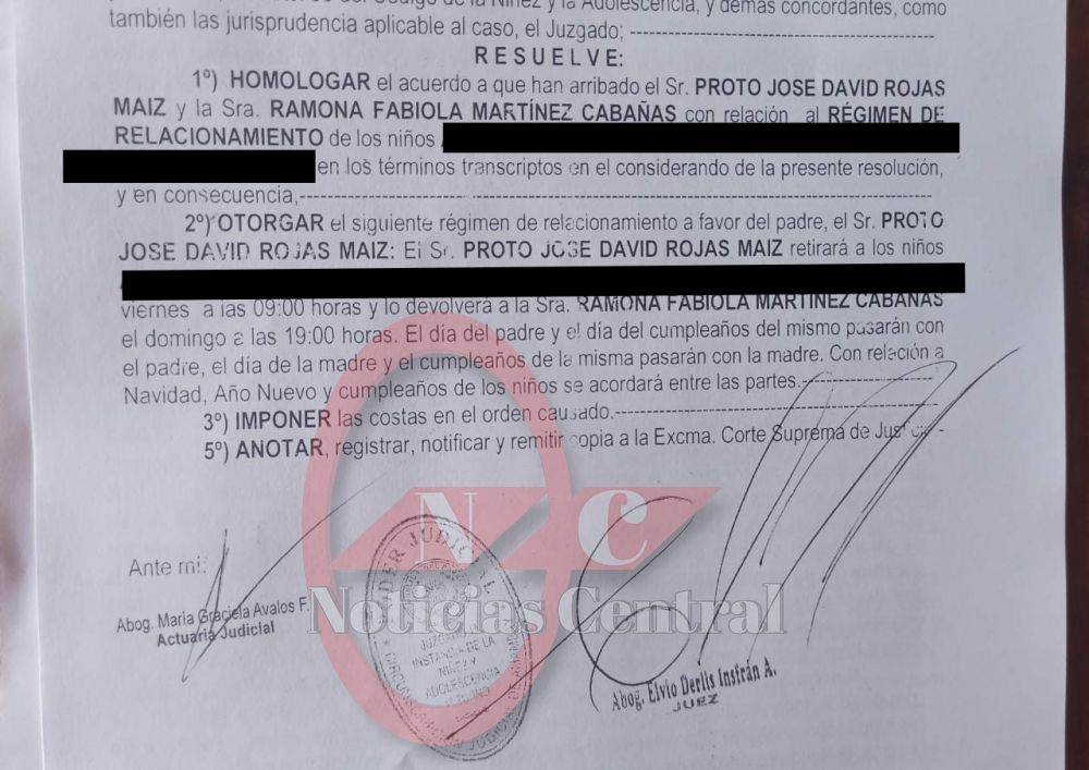 El político Colorado, primeramente denunció a su ex esposa de nombre Fabiola Martínez, por prohibirle ver a sus hijos de 4 años, a pesar de existir una resolución del Juzgado de la Niñez y Adolescencia, de régimen de relacionamiento, que consiste en que sus hijos mellizos, serán retirados por el padre cada viernes las 09hs y devueltos a su madre el domingo las 19hs.