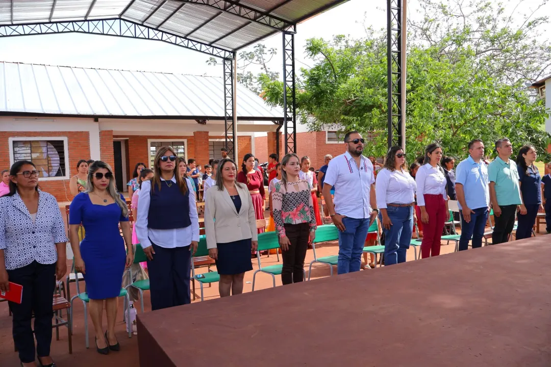 El acto contó con la presencia de la Primera Dama Distrital, Abg. Mercedes Lorena González Figueredo, junto a los concejales municipales Cinthia Valdez (presidenta de la Junta Municipal), Edison Delgado, Sonia Montiel, Julio Duarte, Fernando Monje y Heriberto Aquino. También participaron la supervisora de área, Marcia Aquino, docentes, padres de familia y estudiantes, quienes celebraron la culminación de una obra que contribuirá significativamente al desarrollo educativo y social de la comunidad.