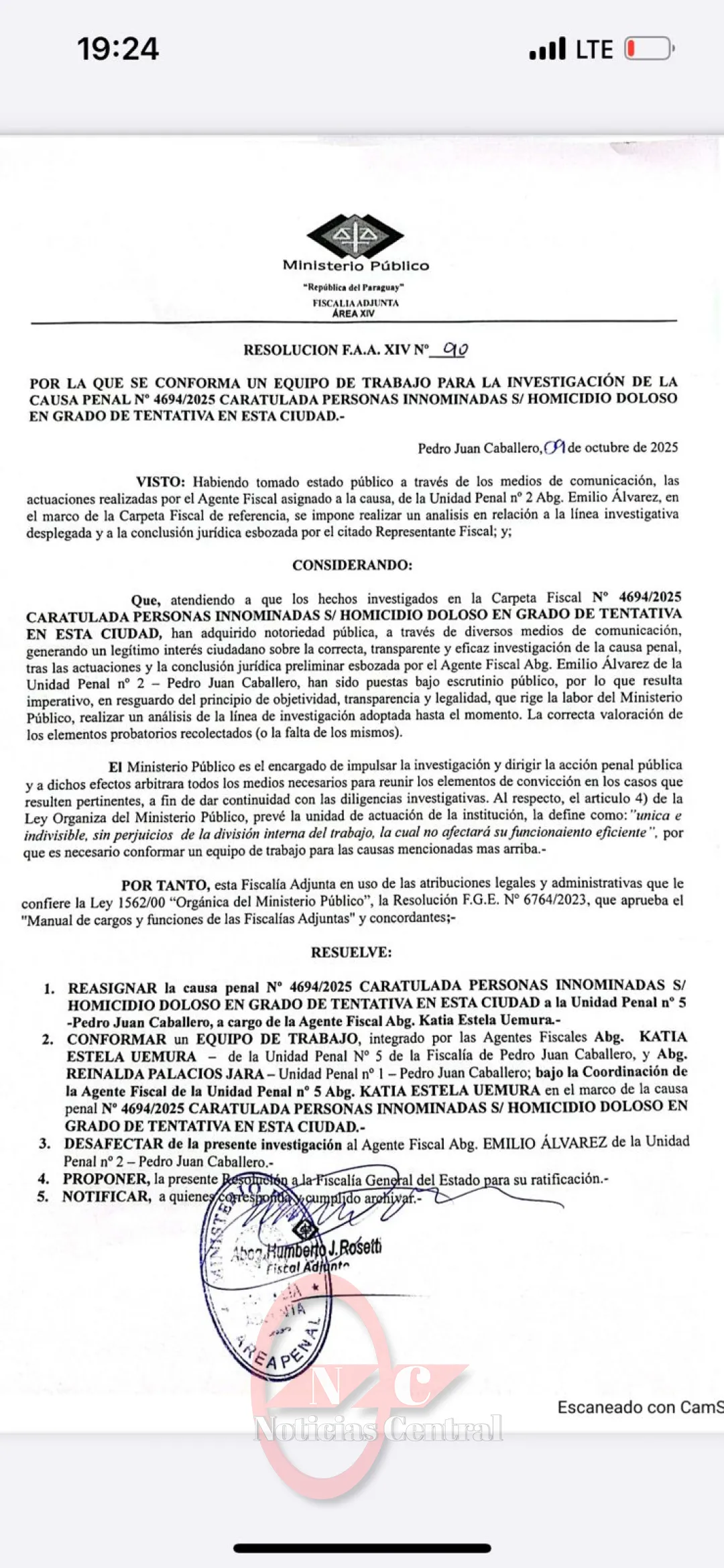 La decisión judicial se da en el marco de la investigación por tentativa de homicidio en la que resultó víctima Virgilio Gabriel Arteta Palacios. Castellano, quien actualmente se encuentra recluido en la Comisaría 12ª de Mujeres, deberá ser trasladada a la Penitenciaría Regional de Pedro Juan Caballero, conforme dispuso el magistrado.