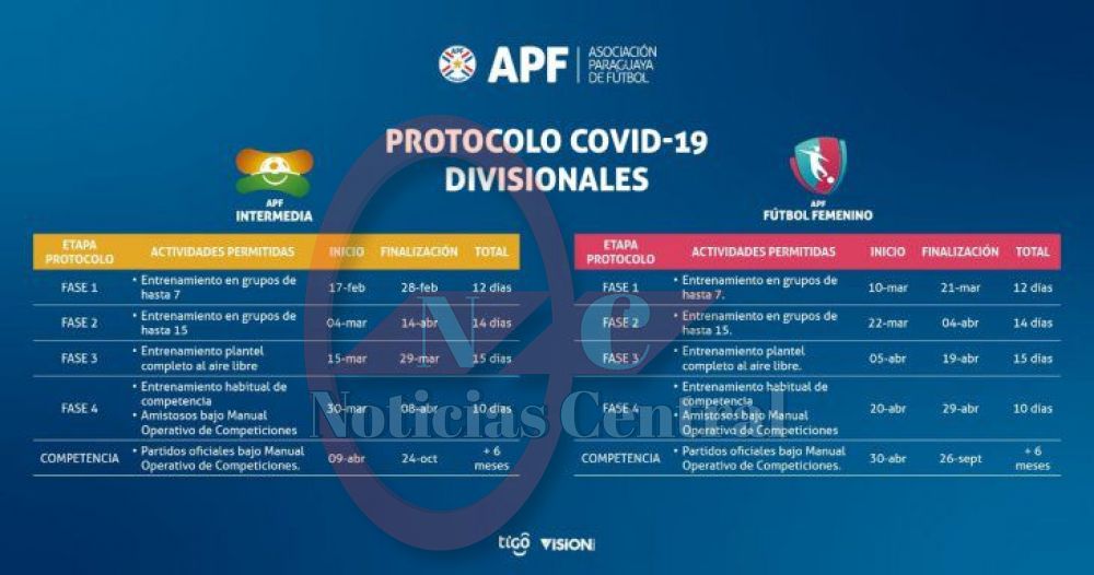 “Tras un prolongado período de conversaciones y profundas revisiones efectuadas entre las autoridades de la Asociación Paraguaya de Fútbol, encabezadas por su presidente Robert Harrison, y las del Ministerio de Salud Pública y Bienestar Social, la máxima autoridad sanitaria del país accedió a autorizar el Protocolo que regirá el Retorno 2021 del Fútbol de Ascenso y Femenino”, reza parte del comunicado de la entidad matriz del balompié nacional.