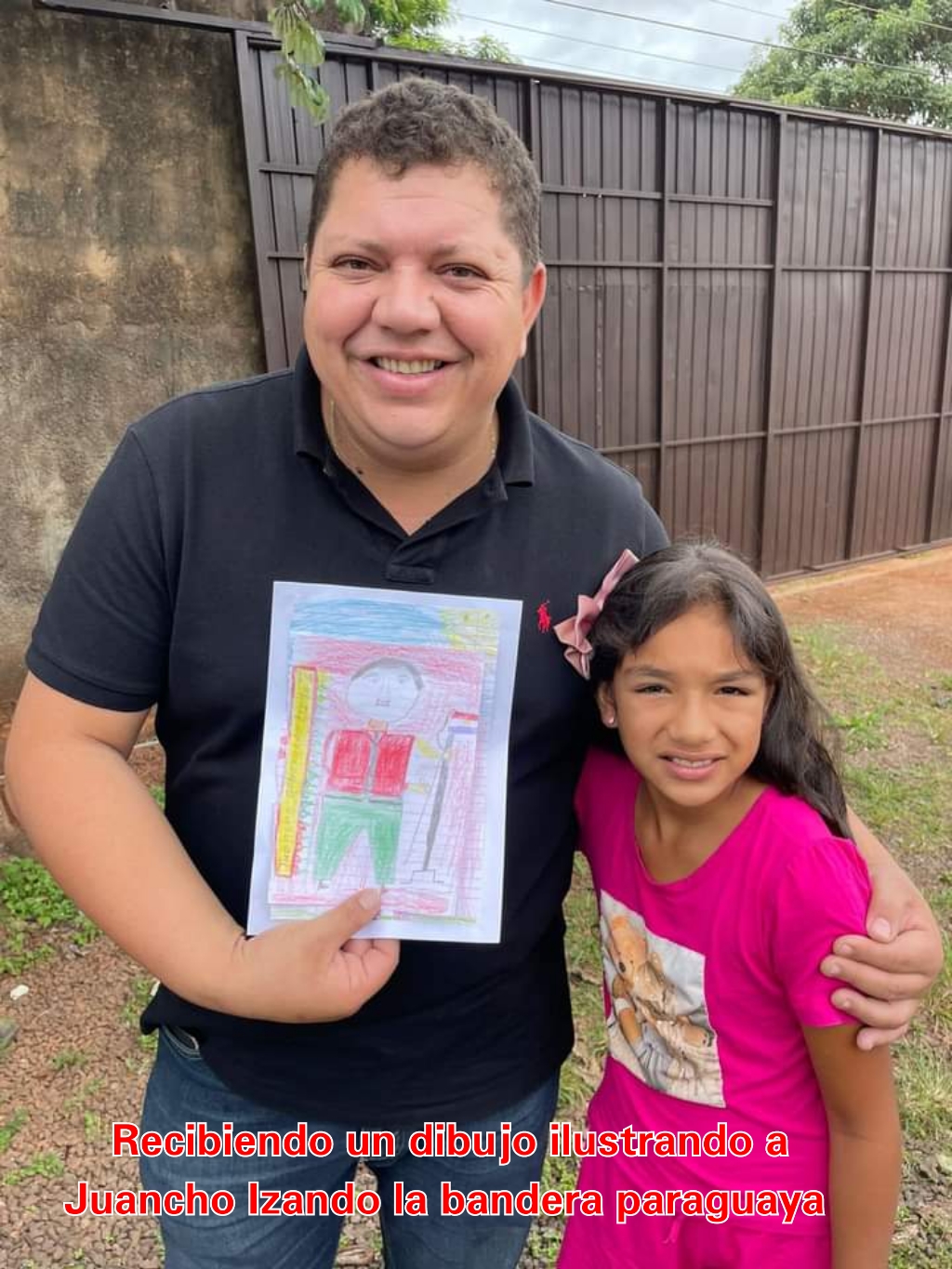 Durante su recorrido una niña de 9 años le hizo entrega de un dibujo del ilustrando a Juancho Izando la bandera paraguaya. El diputado refirió que desde la Gobernación estará luchando por los derechos de los niños y adolescentes para el departamento de Amambay.