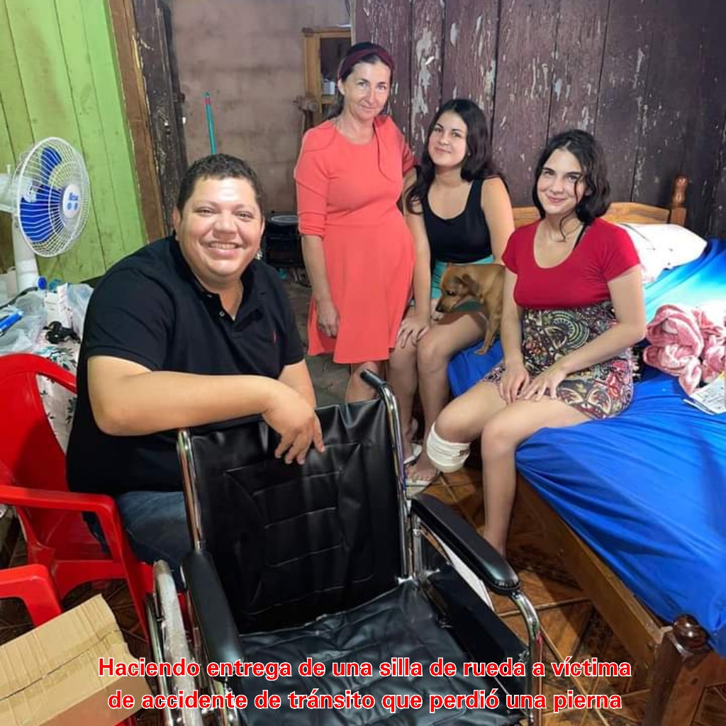 "El trabajo no para cuando se trata de ayudar al pueblo que lo eligió". Juancho Acosta tras tener conocimiento de la joven Amelia Coronel quien había sufrido un grave accidente motivo por el cual perdió una pierna, acudió a su vivienda e hizo entrega de una silla de rueda, para que la misma pueda movilizarse y de esa manera seguir con su recuperación.