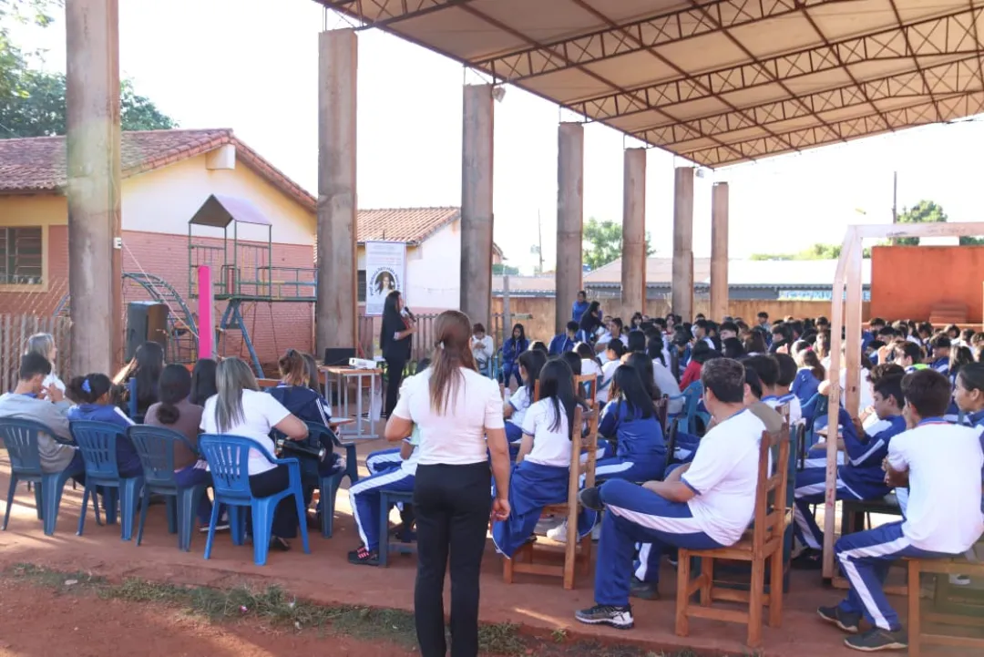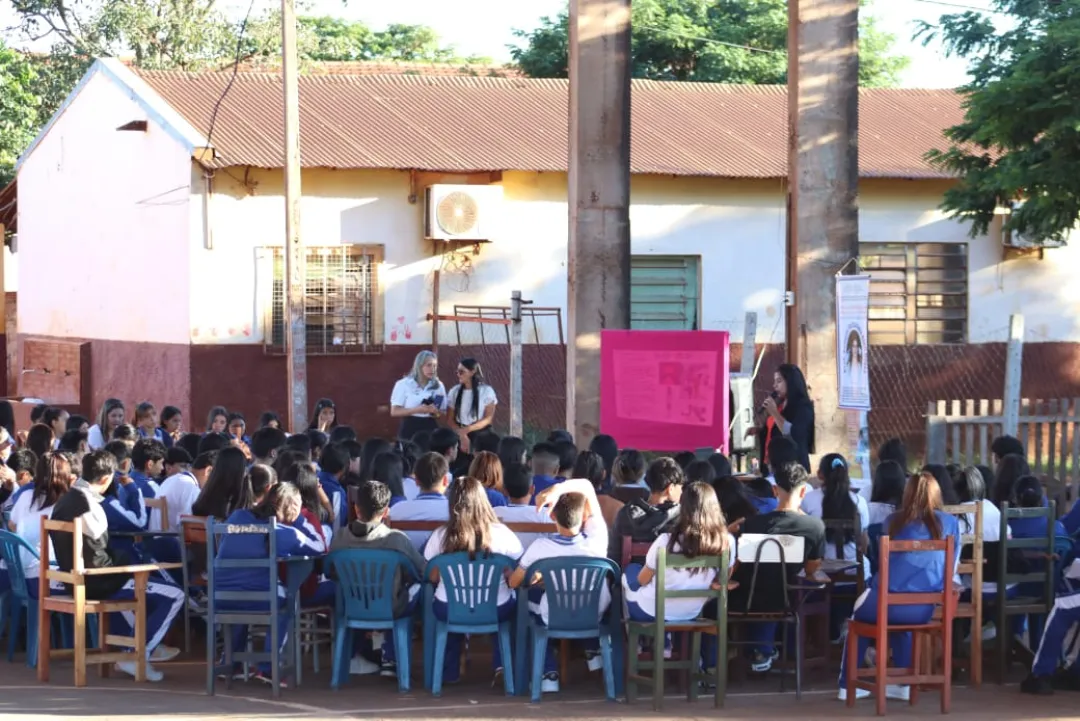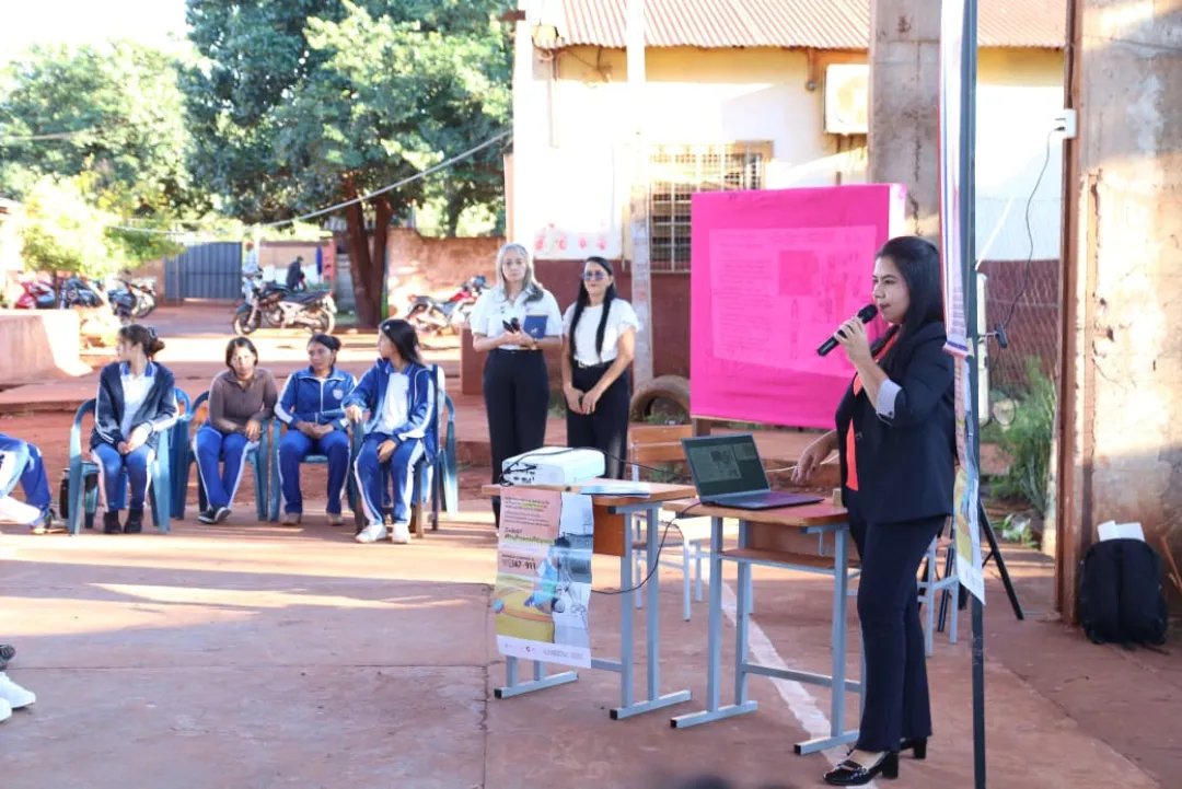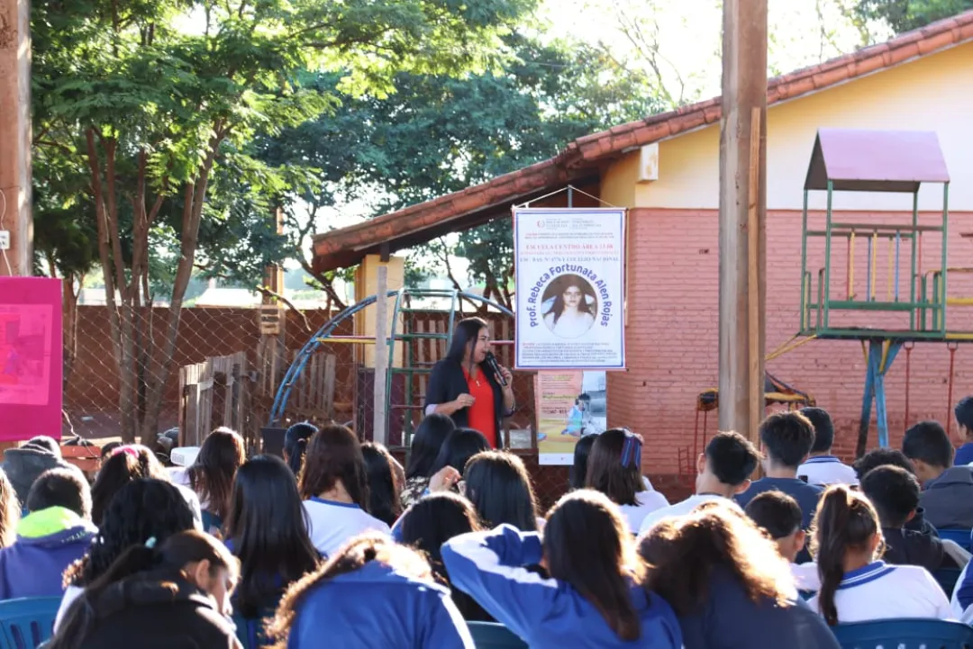 La primera actividad se llevó a cabo en la mañana del miércoles (26) en el Colegio Nacional y Escuela Básica N° 4776 "Rebeca Fortunada Alen Rojas". El taller estuvo a cargo de la Abg. Cynthia Lorena López Domínguez, docente universitaria y capacitadora del MINNA. Además, contó con la participación de la Lic. Mirta Gómez, Subsecretaria de la Niñez y Adolescencia de la Gobernación de Amambay.