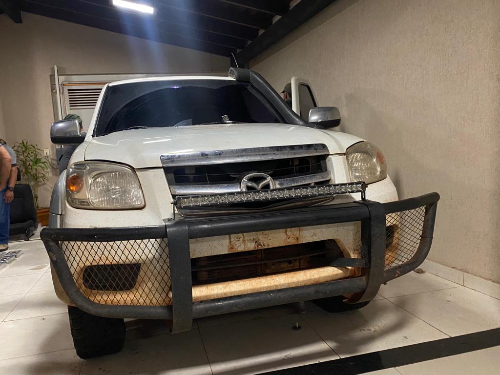 La comitiva realizó una minuciosa inspección de la vivienda y posteriormente de una camioneta de la marca Mazda de color blanco, sin matrícula, que se encontraba estacionado en el lugar. El rodado tenía doble fondo tanto en el interior de la cabina como en la carrocería, dentro de los compartimientos ocultos hallaron paquetes de cocaína listos para ser transportados.