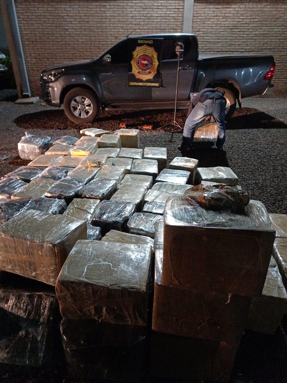 Bajo los postes de madera, los intervinientes hallaron un total de 1.984 Kilos de Marihuana Prensada, distribuidos en 72 paquetes o fardos. También se dispuso la incautación del camión de la marca Mercedes Benz, con matrícula ASY 070 y teléfonos celulares. El valor de la carga en territorio brasileño ronda los 500 Mil Dólares Americanos.